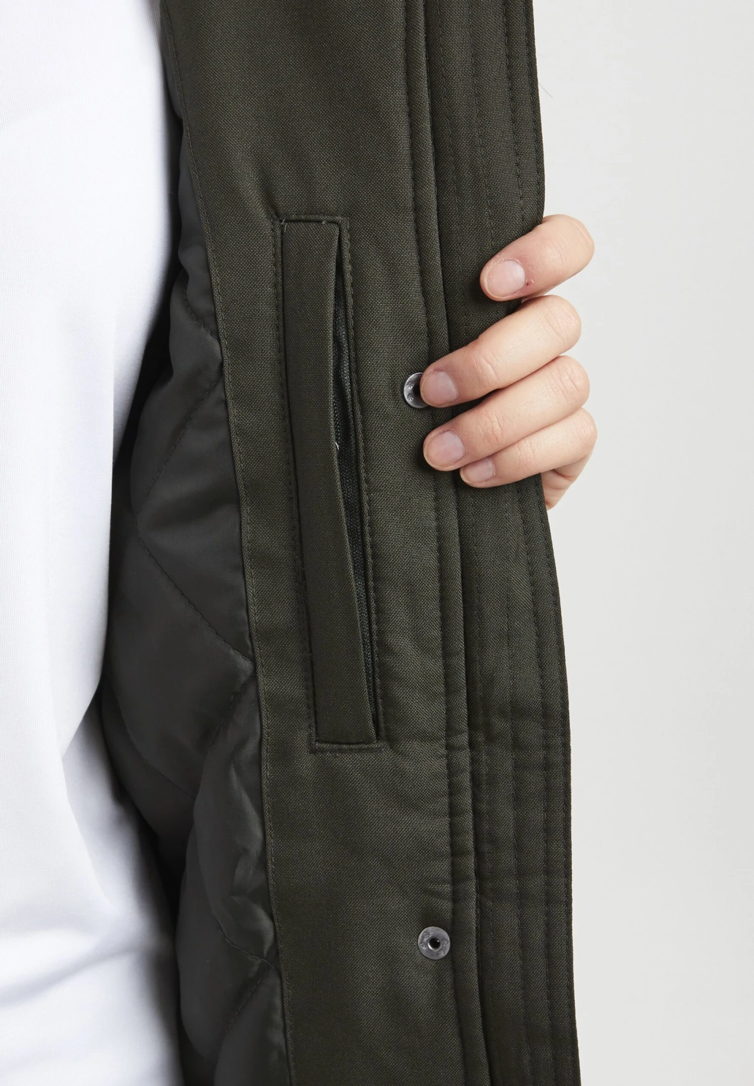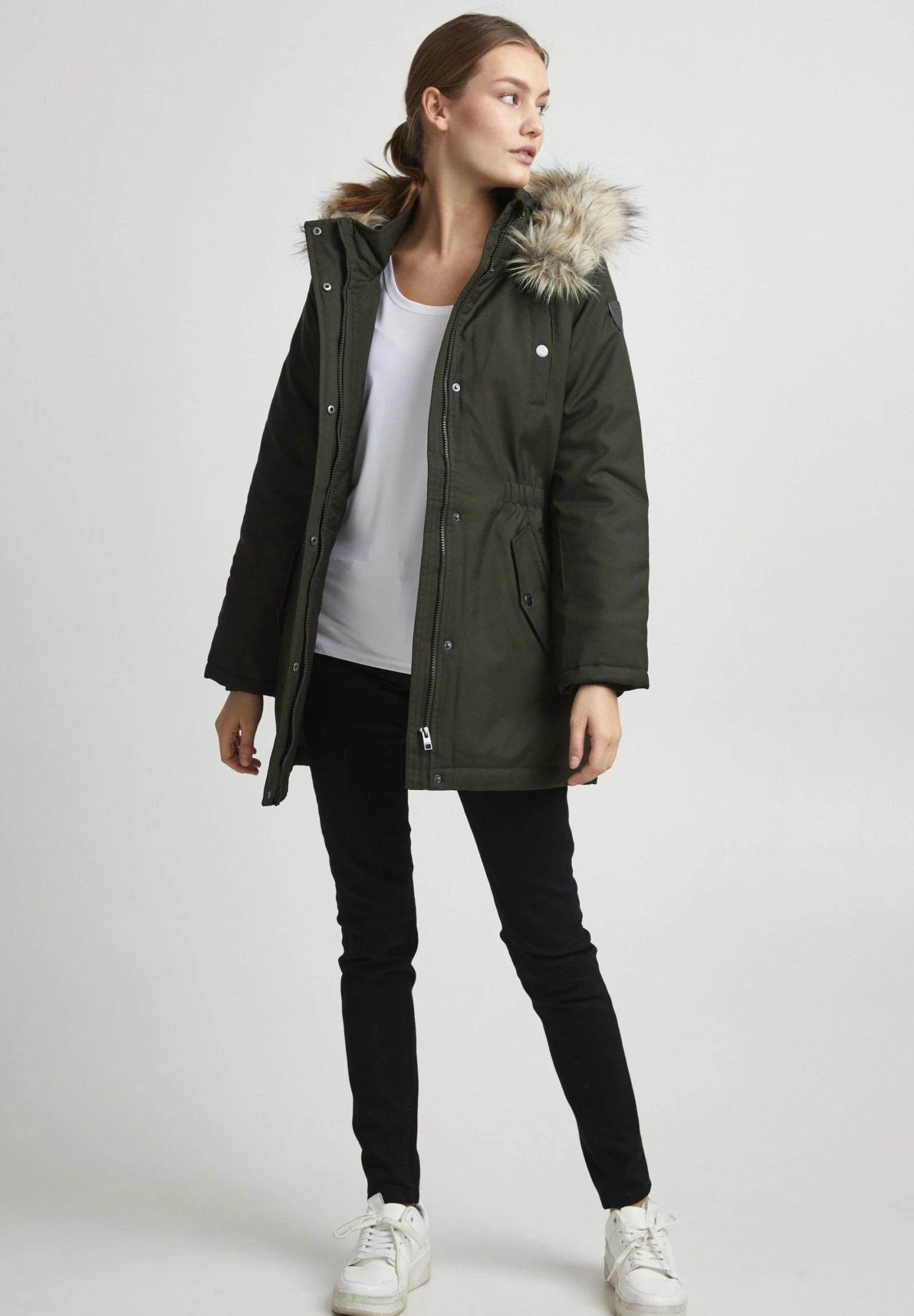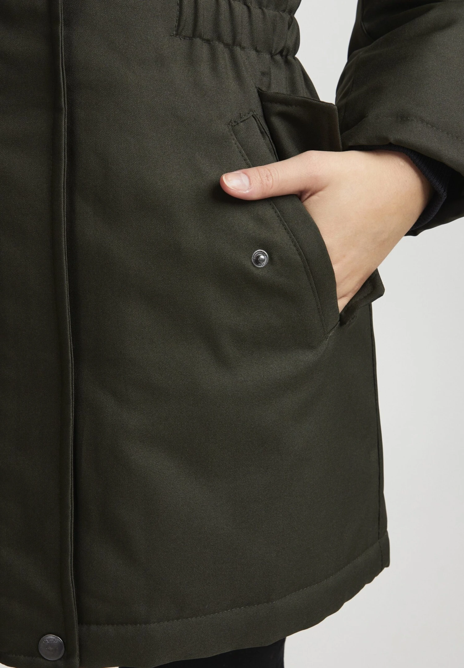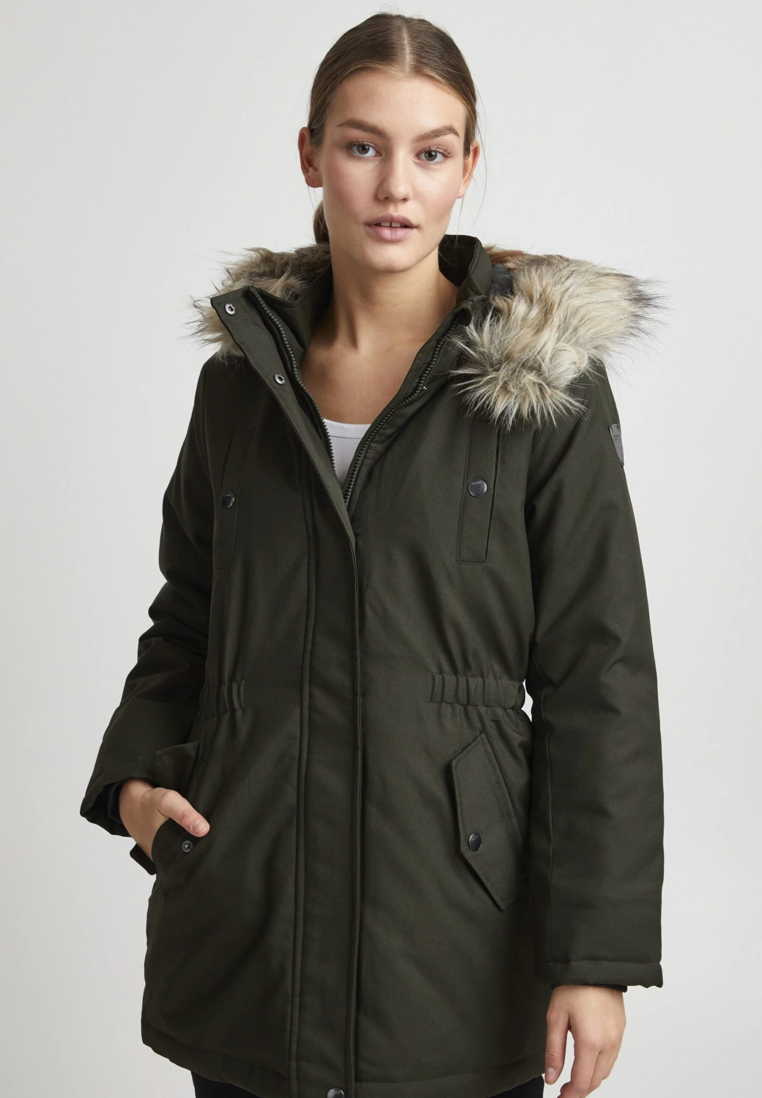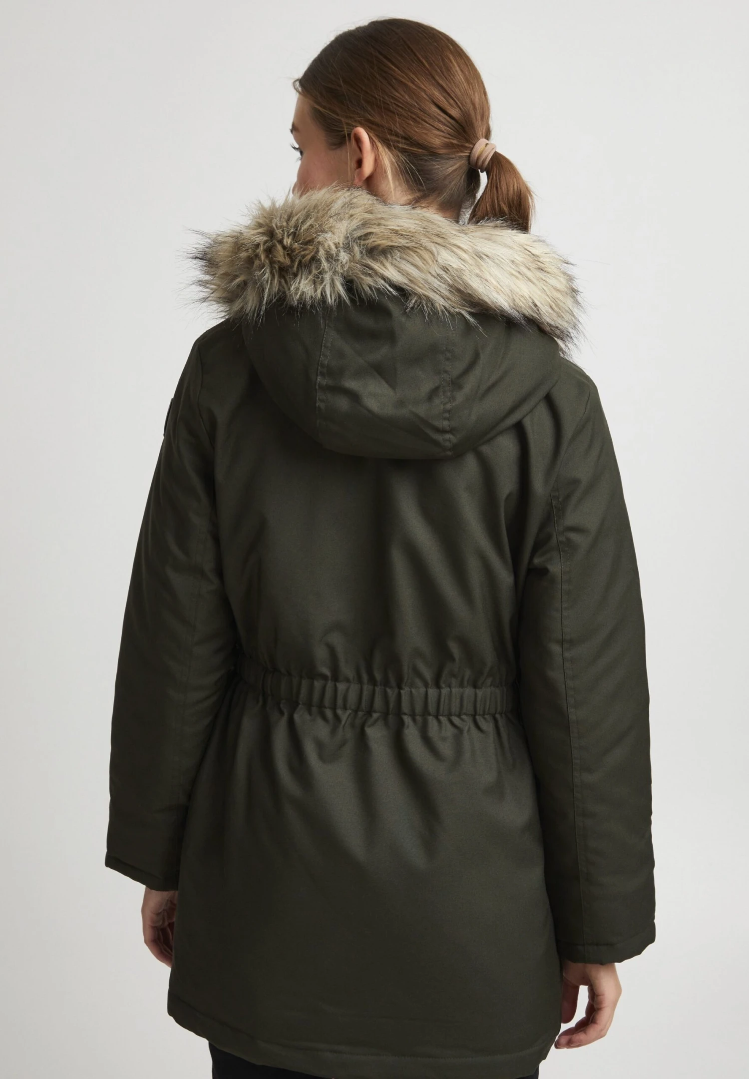 | Details capuchon | Afneembare imitatiebontkraag |